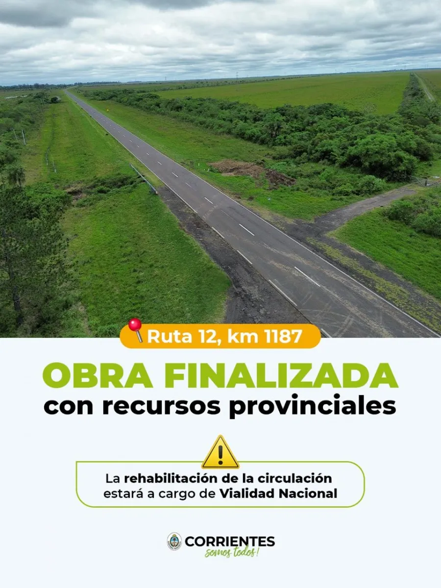 CORRIENTES Tras dos días de intensas tareas, Vialidad Provincial finalizó los trabajos de reparación en el kilómetro 1187 de la Ruta Nacional N° 12, cerca de Itá Ibaté. La habilitación del tránsito quedará ahora a cargo de Vialidad Nacional.